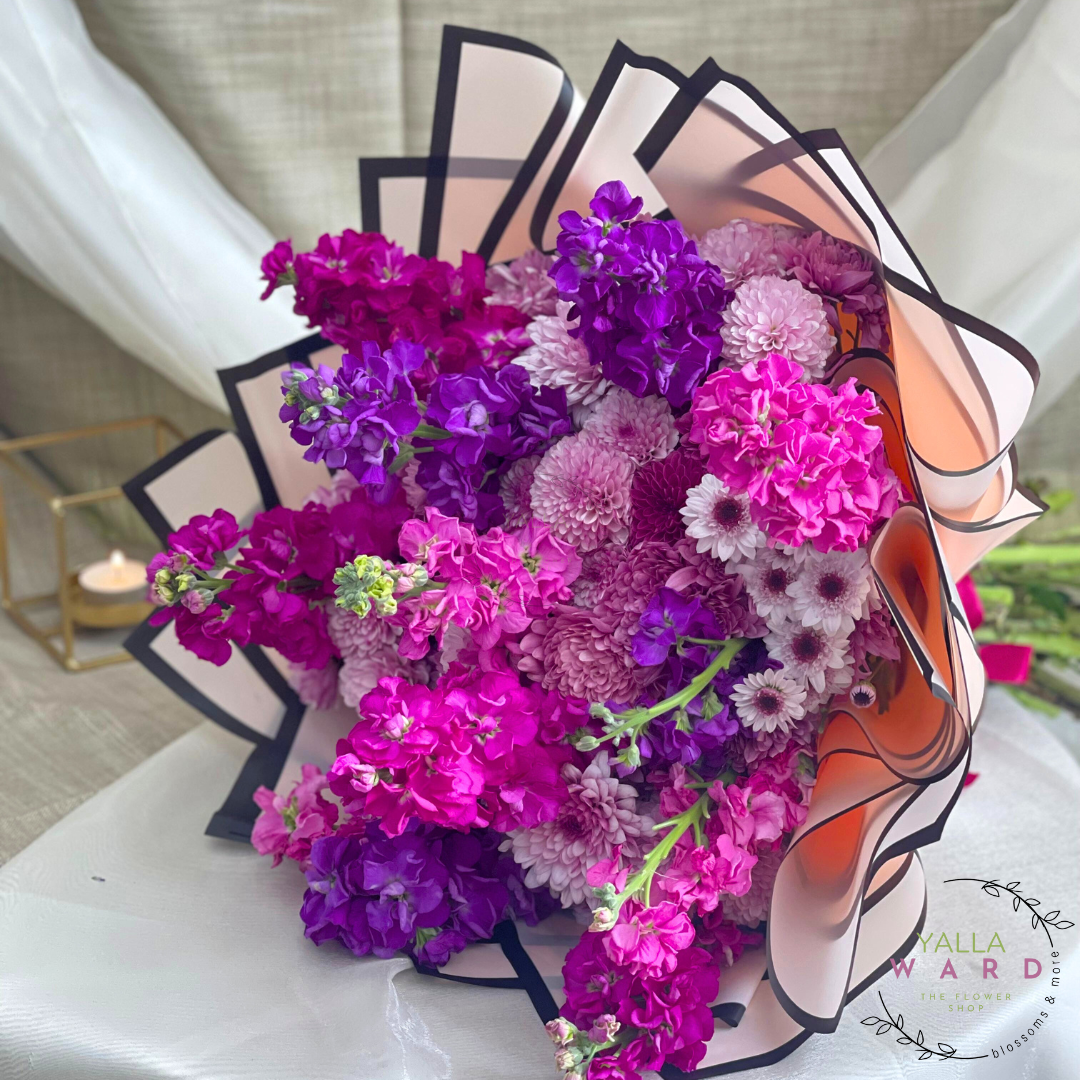 Mom’s favorite: a grand, breathtaking bouquet of pink and purple flowers—guaranteed to be our mom’s favorite! making it the perfect gift for birthdays, anniversaries, or just to show someone you care. Soft, cuddly, and beautifully arranged.
